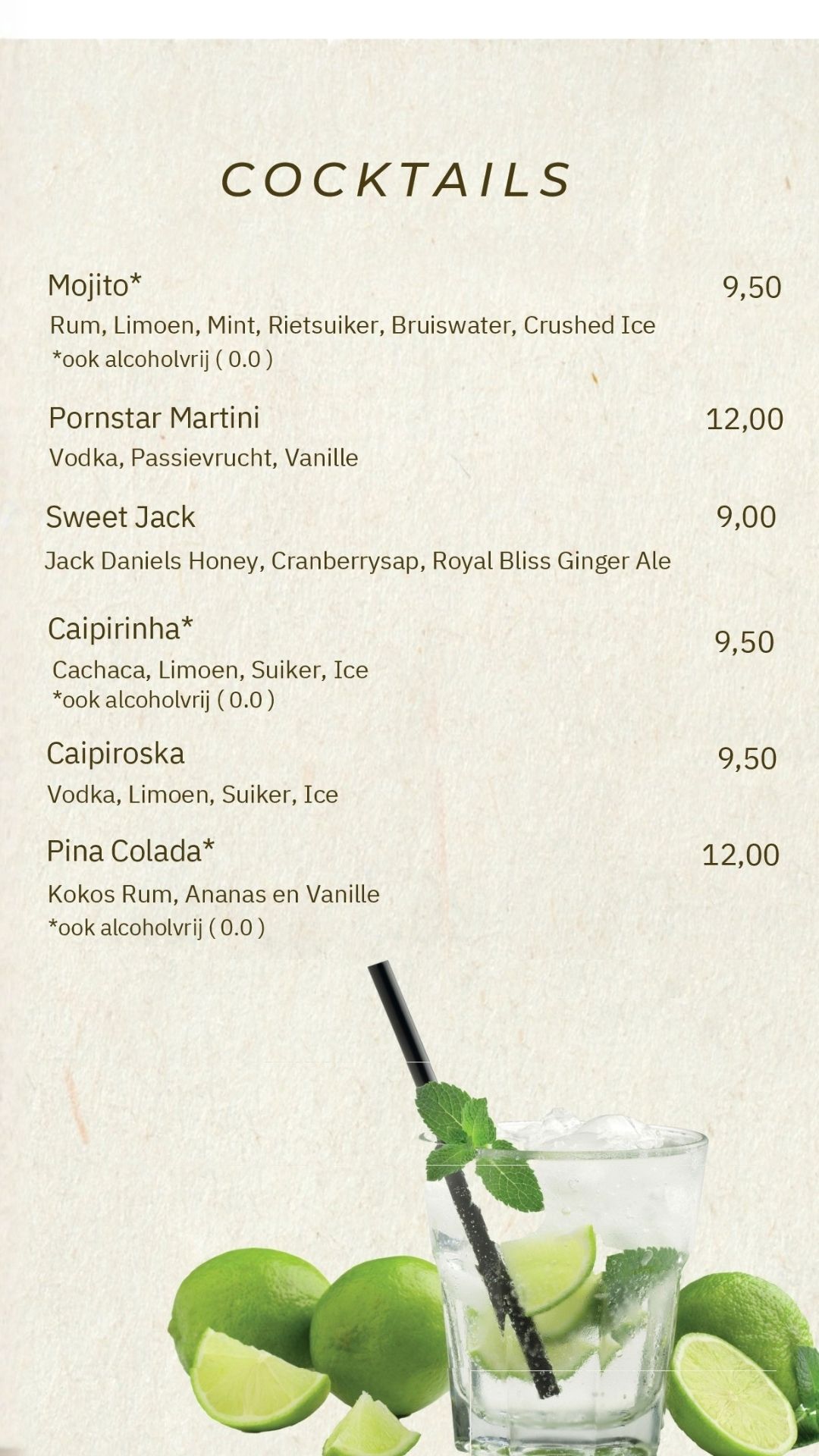 U kunt uw avond extra Braziliaans beginnen. U kunt uw arrangement voor € 4,50 per persoon uitbreiden met een Welkomstcocktail. De keuzes zijn: